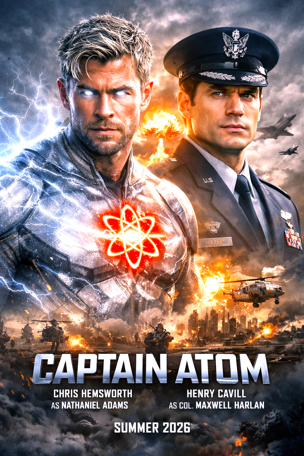 🎭 Starring: Chris Hemsworth as Nathaniel Adams (Captain Atom), Henry Cavill as Colonel Maxwell Harlan