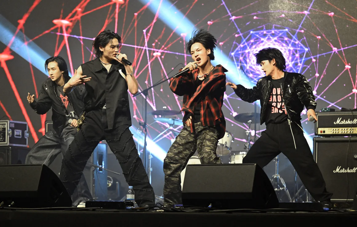 1Verse members, from left, Kenny, Aito, Hyuk and Seok perform during a music festival in Suwon, South Korea, on November 25.