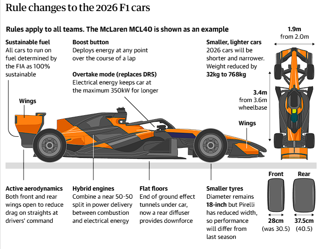 New hybrid engines and a slew of design and technological changes have also brought a whole new lexicon that needs to be mastered from active aero to super-clipping. Read on for a full technical guide to F1’s key 2026 changes.