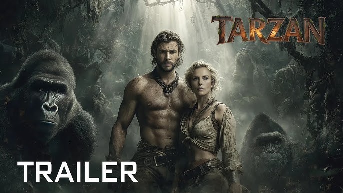 The trailer opens with a sweeping aerial shot of dense, emerald jungle — waterfalls crash, wild calls echo, and the camera dives down to reveal Tarzan sprinting through the treetops, muscles taut, movements fluid and primal. A haunting voiceover whispers: “The jungle raised him. The world betrayed him.” Thunder cracks as human machines tear through the forest, and Tarzan roars back into battle — bare-chested, scarred, and unstoppable.