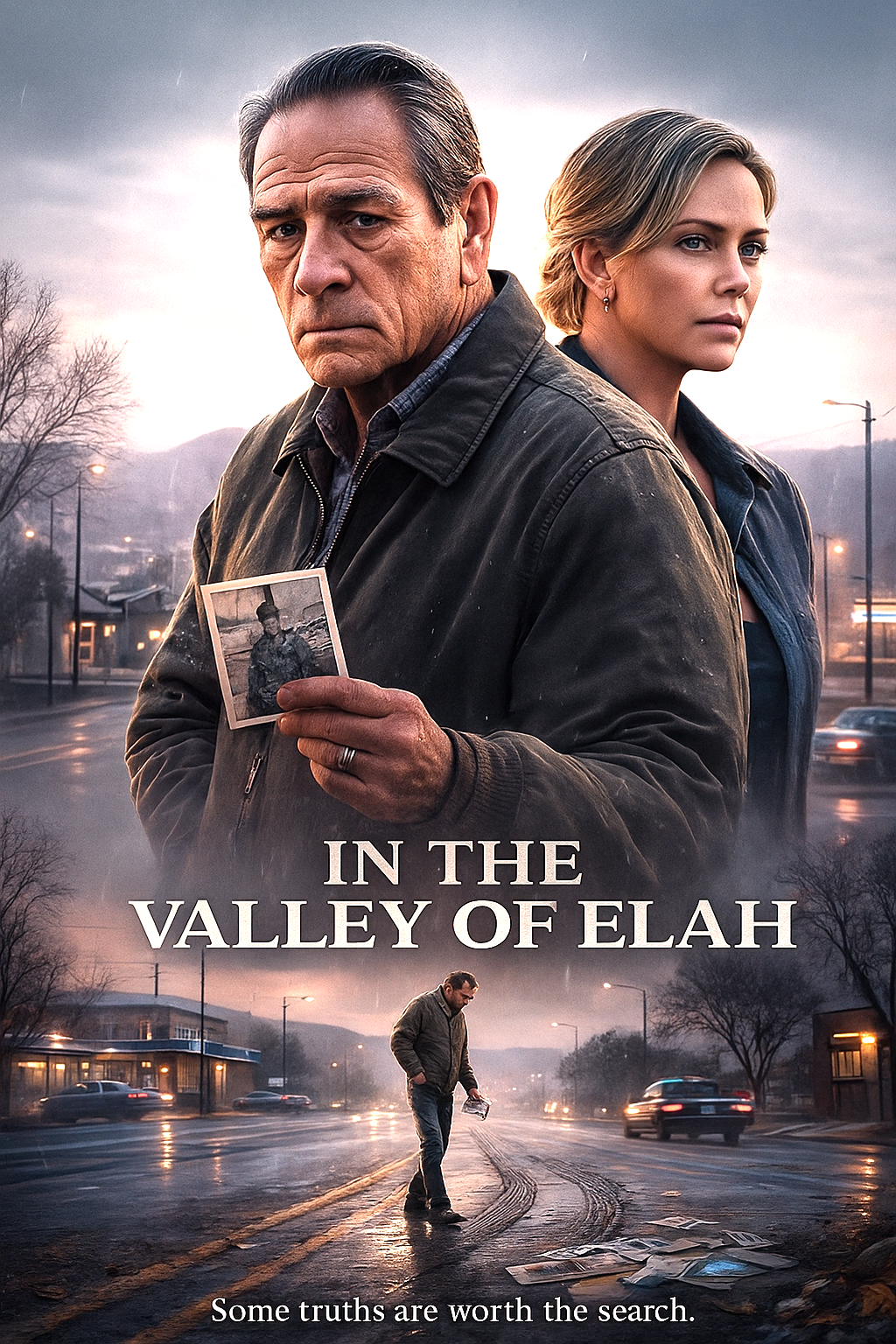 In the Valley of Elah follows Hank Deerfield (Tommy Lee Jones), a retired military investigator searching for answers after his son mysteriously disappears soon after returning from Iraq. Teaming up with Detective Emily Sanders (Charlize Theron), Hank uncovers disturbing truths about the war, trauma, and the hidden consequences faced by returning soldiers. The film blends mystery, emotional drama, and social commentary with quiet, powerful intensity.