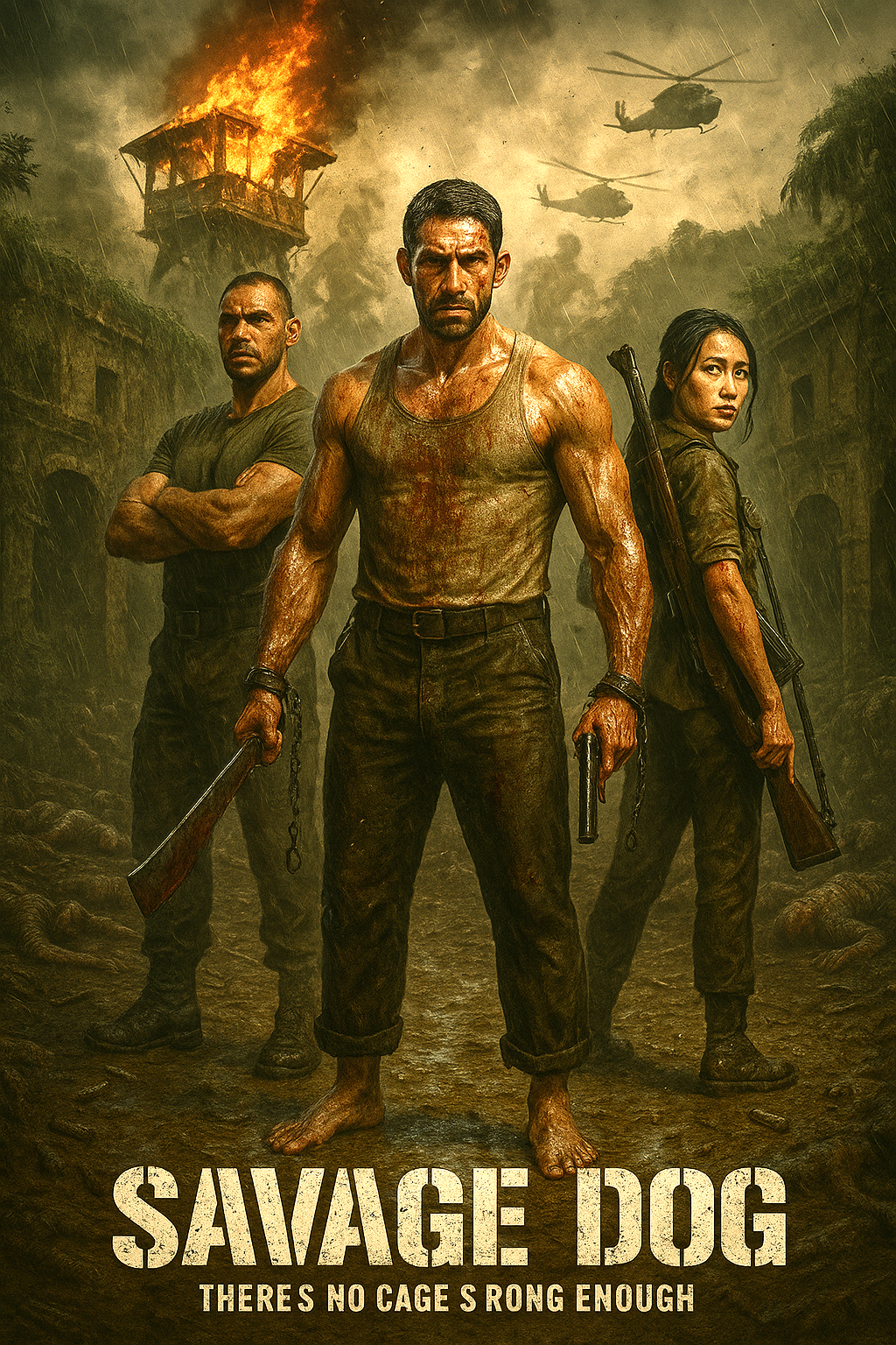 Savage Dog is set in Indochina in 1959, where ex-boxer Martin Tillman (Scott Adkins) is imprisoned in a brutal labor camp controlled by ruthless criminals and former soldiers. Forced to fight in deadly bare-knuckle matches for the entertainment and profit of the camp’s leaders, Tillman’s world is shattered by personal tragedy. He embarks on a relentless path of revenge, targeting those responsible for his suffering and those who exploited the weak around him.