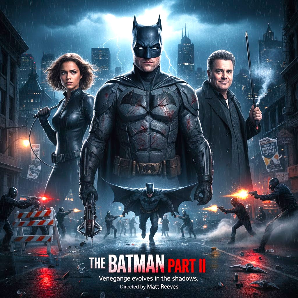 After the breakout success of The Batman (2022), the Caped Crusader is set to return in The Batman Part 2. While plot details remain largely under wraps, the sequel is expected to follow Bruce Wayne as Gotham continues to reel from the corruption and chaos unearthed in the first film — and possibly face new threats rising from the city’s darkness.
