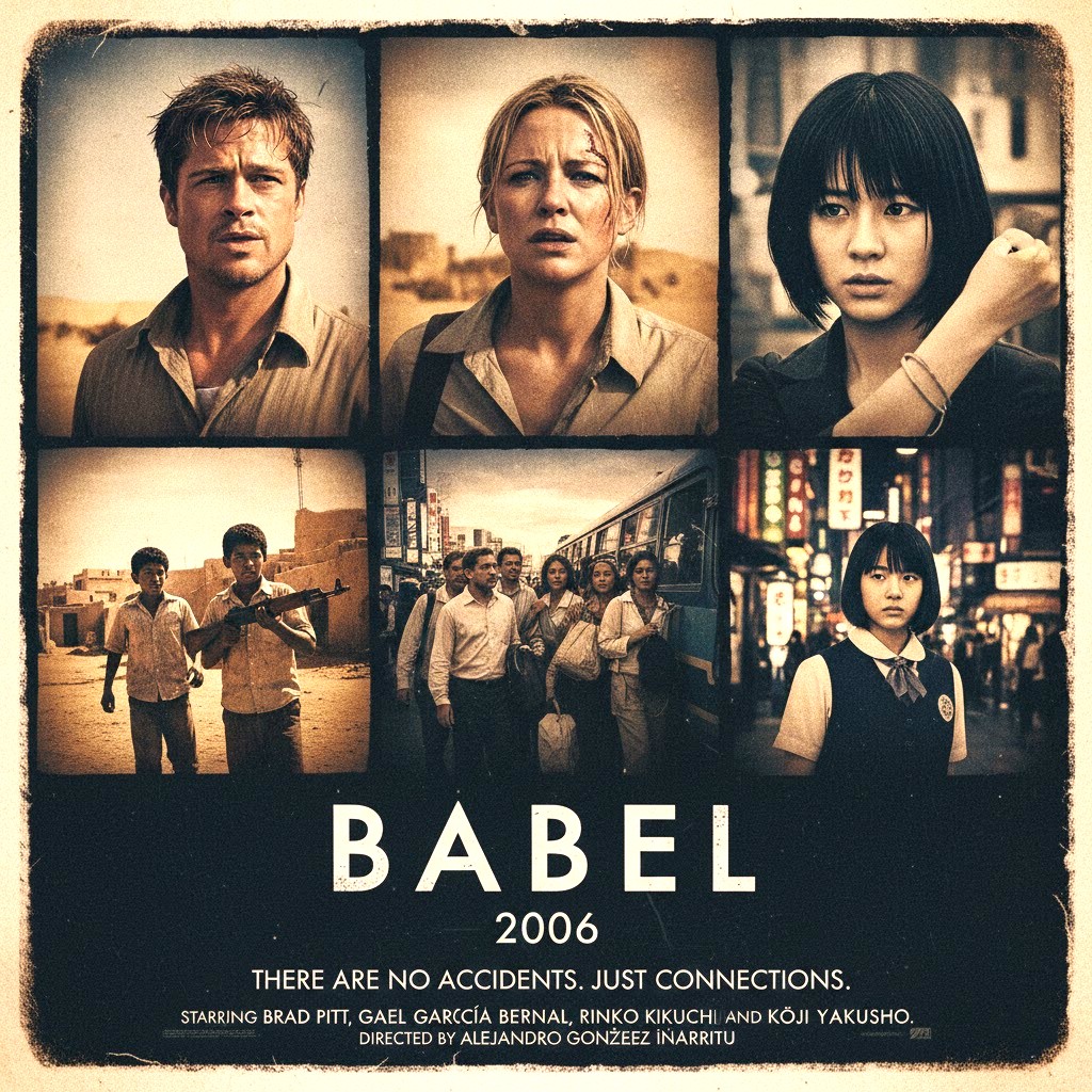 Babel is a haunting, multi-narrative exploration of human fragility and global interconnectedness. Told across Morocco, Japan, Mexico, and the United States, the film examines how a single violent incident reverberates across continents, intertwining strangers’ lives in unexpected and devastating ways.