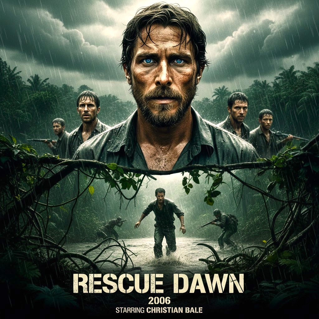 Rescue Dawn is a gripping war drama based on the true story of Dieter Dengler, a U.S. Navy pilot shot down and captured during the Vietnam War. The film follows Dengler (Christian Bale) as he endures brutal conditions in a remote POW camp, faces constant physical and psychological torment, and plans a daring escape.