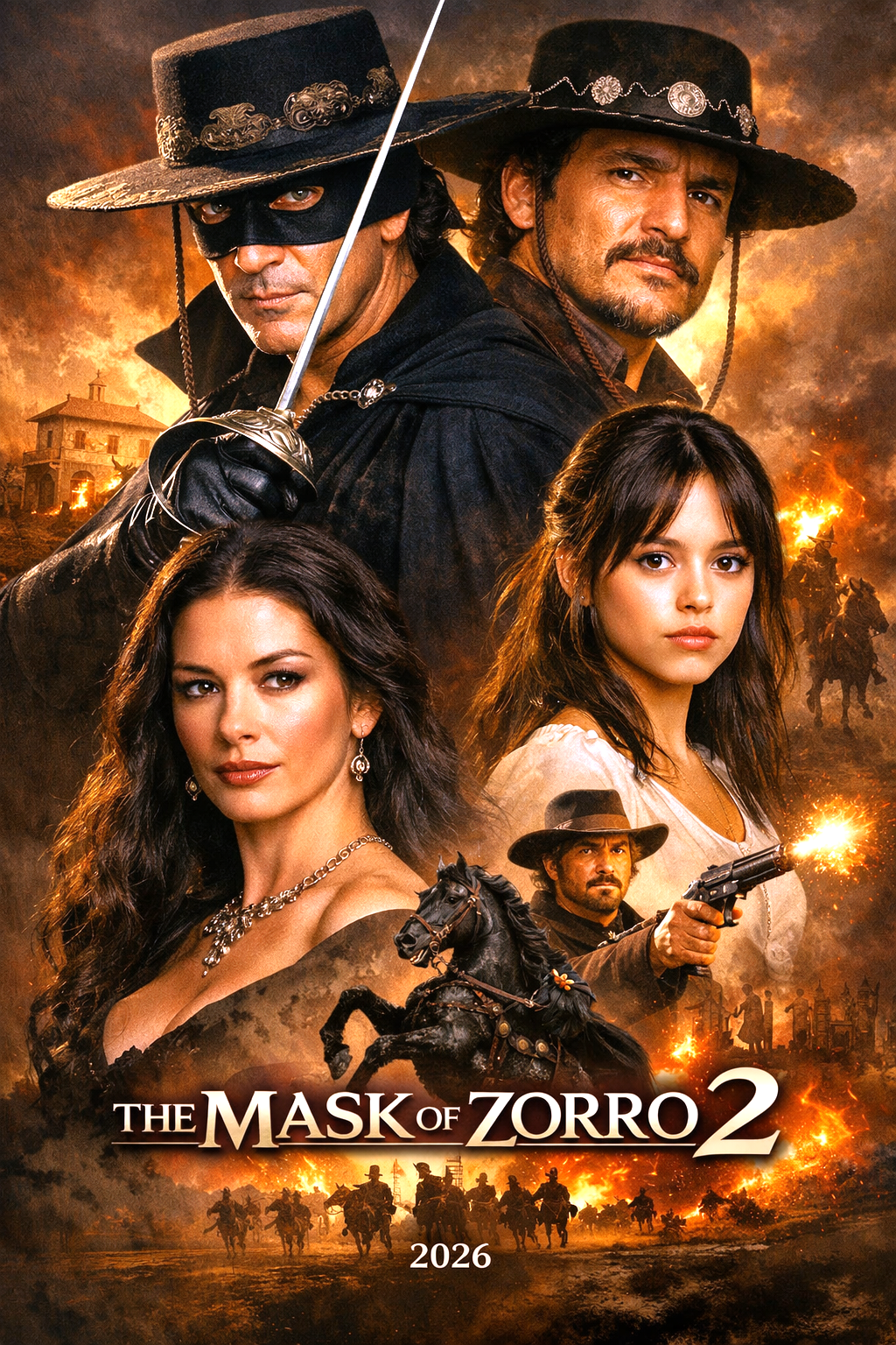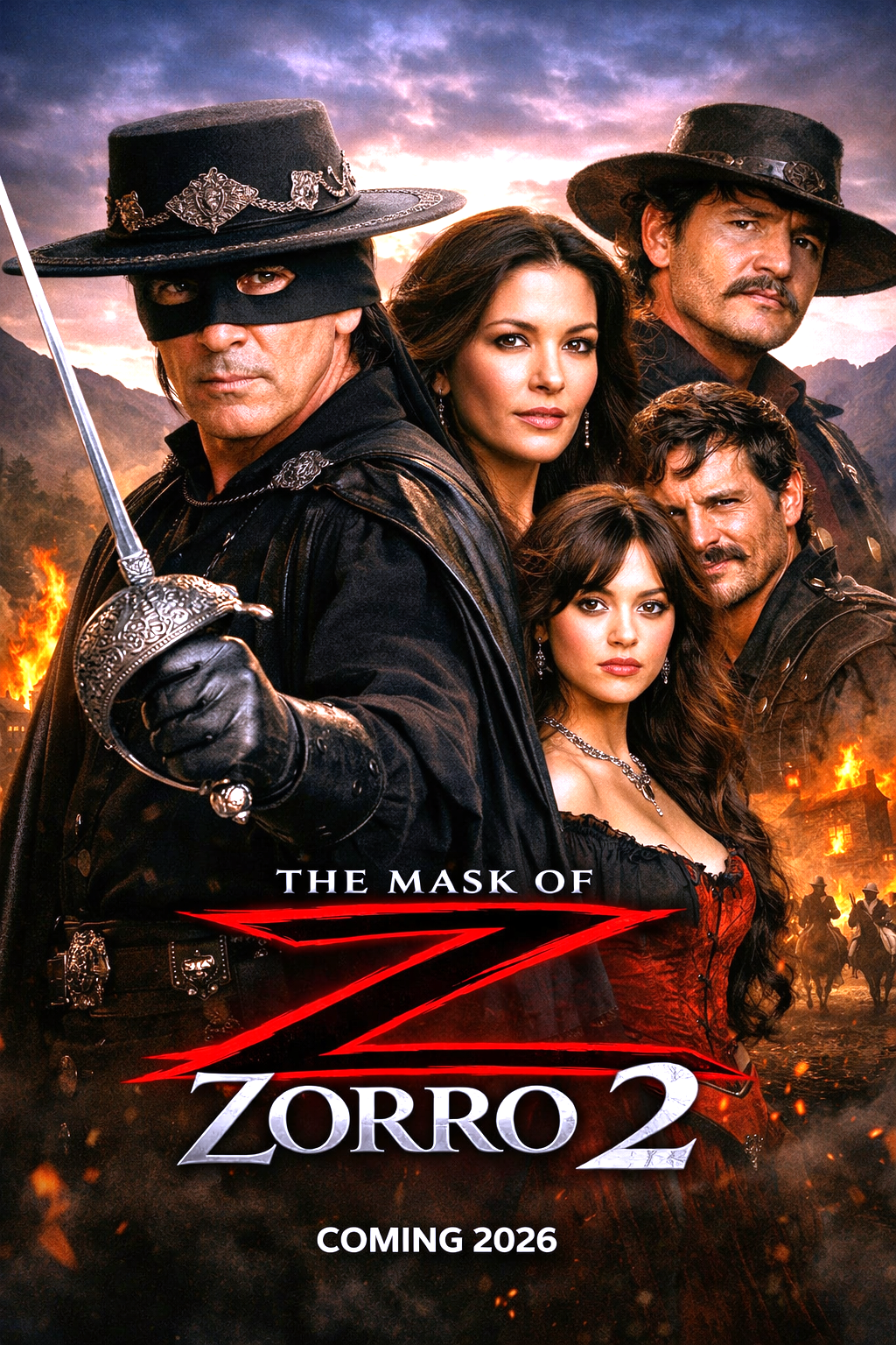 Jenna Ortega plays his rebellious daughter, a fearless new-generation hero who challenges tradition while forging her own path. Catherine Zeta-Jones returns as Elena, the emotional anchor of the family, while Pedro Pascal enters as a charismatic and dangerous antagonist — a revolutionary who blurs the line between freedom fighter and tyrant.